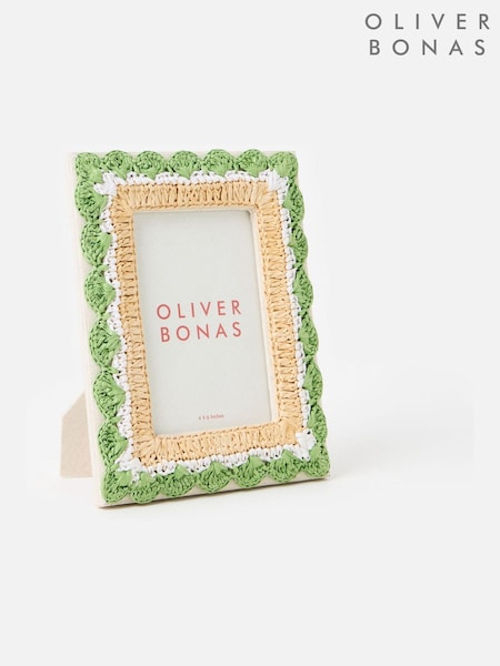 Oliver Bonas Green Raffia Photo Frame 4x6