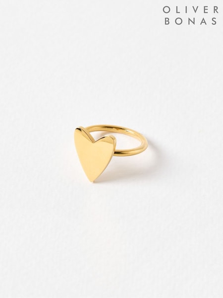 Oliver Bonas Gold Tone Billie Stainless Steel Waterproof Heart Ring