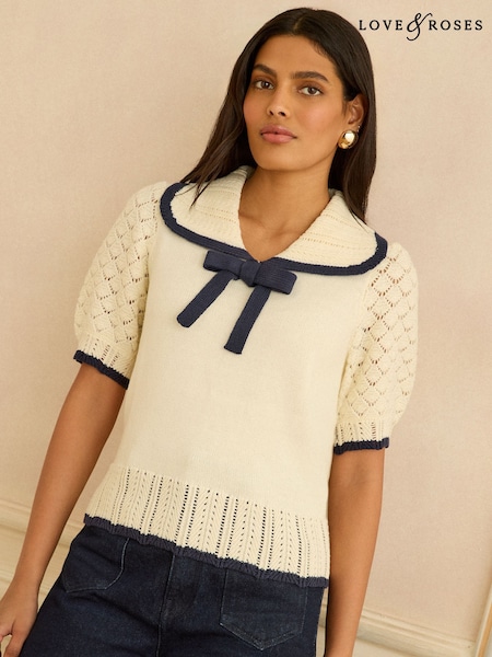 Love & Roses Ivory Bow Detail Sailor Collar Knitted Jumper