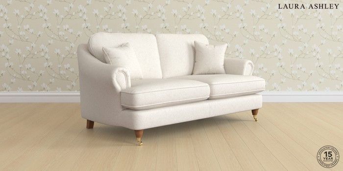 7.3.1 Buy Ambersham by Laura Ashley 3 Seater Small Sofa Anneliese Oyster Natural Low Brass Castor - Teak from the Seasons online shop Click here to use our website with more accessibility support, for example screen readers
