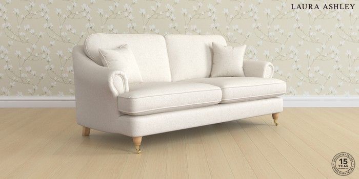 7.3.1 Buy Ambersham by Laura Ashley 3 Seater Sofa Anneliese Oyster Natural Low Brass Castor - Light Oak from the Seasons online shop Click here to use our website with more accessibility support, for example screen readers