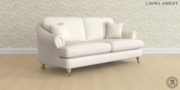 7.3.1 Buy Ambersham by Laura Ashley 3 Seater Sofa Anneliese Oyster Natural Low Chrome Castor - Light Oak from the Seasons online shop Click here to use our website with more accessibility support, for example screen readers