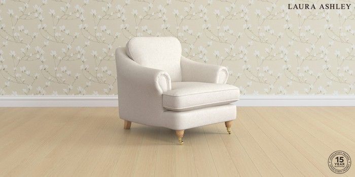 7.3.1 Buy Ambersham by Laura Ashley Armchair Anneliese Oyster Natural Low Brass Castor - Light Oak from the Seasons online shop Click here to use our website with more accessibility support, for example screen readers
