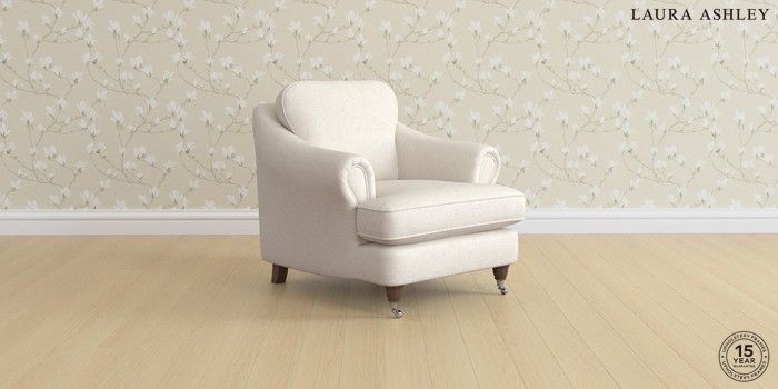7.3.1 Buy Ambersham by Laura Ashley Armchair Anneliese Oyster Natural Low Chrome Castor - Chestnut from the Seasons online shop Click here to use our website with more accessibility support, for example screen readers