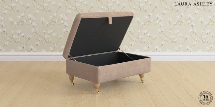7.3.1 Buy Ambersham by Laura Ashley Storage Footstool Ailsworth Mink Natural Low Brass Castor - Light Oak from the Seasons online shop Click here to use our website with more accessibility support, for example screen readers