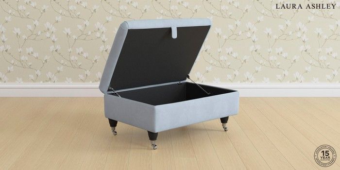 7.3.1 Buy Ambersham by Laura Ashley Storage Footstool Ailsworth Newport Blue Low Chrome Castor - Black from the Seasons online shop Click here to use our website with more accessibility support, for example screen readers