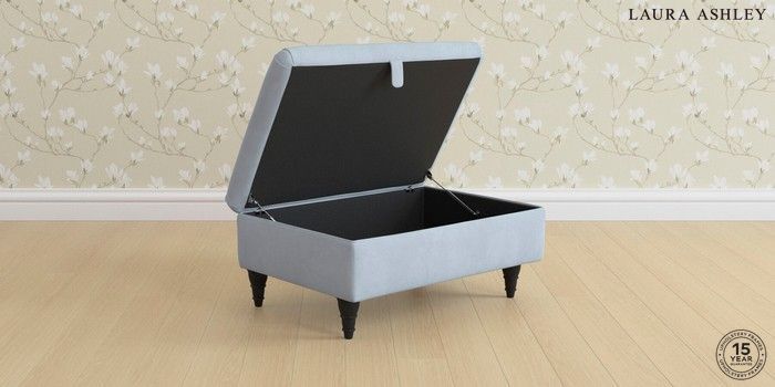7.3.1 Buy Ambersham by Laura Ashley Storage Footstool Ailsworth Newport Blue Low Turned - Black from the Seasons online shop Click here to use our website with more accessibility support, for example screen readers