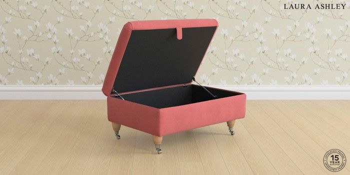 7.3.1 Buy Ambersham by Laura Ashley Storage Footstool Ailsworth Old Rose Pink Low Chrome Castor - Light Oak from the Seasons online shop Click here to use our website with more accessibility support, for example screen readers