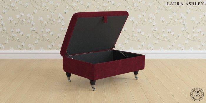 7.3.1 Buy Ambersham by Laura Ashley Storage Footstool Alwyn Velvet Burgundy Red Low Chrome Castor - Black from the Seasons online shop Click here to use our website with more accessibility support, for example screen readers