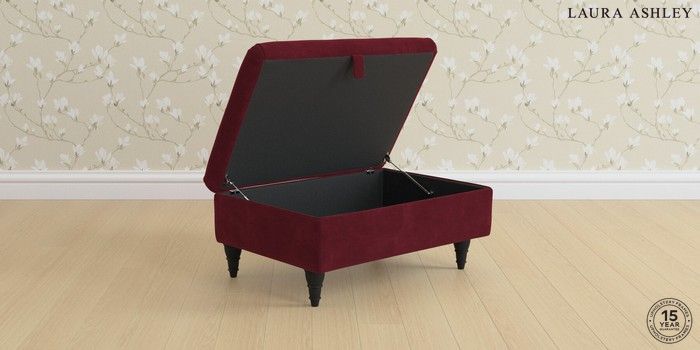 7.3.1 Buy Ambersham by Laura Ashley Storage Footstool Alwyn Velvet Burgundy Red Low Turned - Black from the Seasons online shop Click here to use our website with more accessibility support, for example screen readers