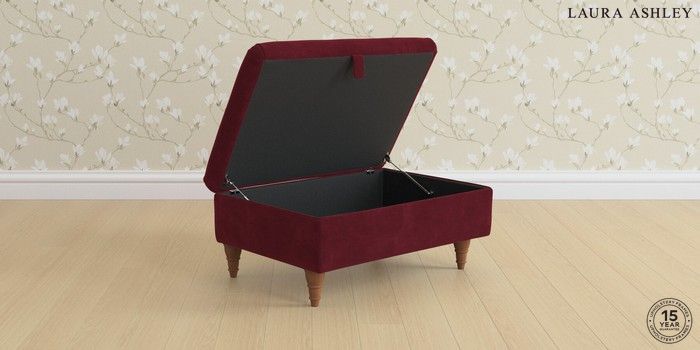 7.3.1 Buy Ambersham by Laura Ashley Storage Footstool Alwyn Velvet Burgundy Red Low Turned - Teak from the Seasons online shop Click here to use our website with more accessibility support, for example screen readers