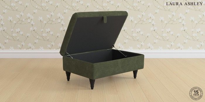7.3.1 Buy Ambersham by Laura Ashley Storage Footstool Alwyn Velvet Ivy Green Low Turned - Black from the Seasons online shop Click here to use our website with more accessibility support, for example screen readers