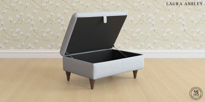 7.3.1 Buy Ambersham by Laura Ashley Storage Footstool Anneliese Seaspray Blue Low Turned - Chestnut from the Seasons online shop Click here to use our website with more accessibility support, for example screen readers