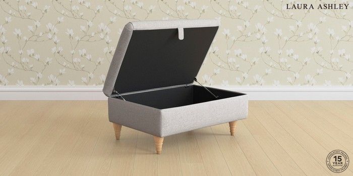 7.3.1 Buy Ambersham by Laura Ashley Storage Footstool Anneliese Steel Grey Low Turned - Light Oak from the Seasons online shop Click here to use our website with more accessibility support, for example screen readers