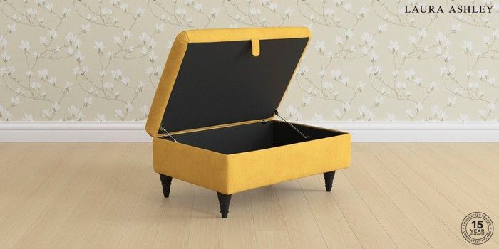 7.3.1 Buy Ambersham by Laura Ashley Storage Footstool Bainton Ochre Yellow Low Turned - Black from the Seasons online shop Click here to use our website with more accessibility support, for example screen readers
