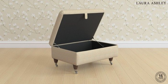 7.3.1 Buy Ambersham by Laura Ashley Storage Footstool Birchgrove Check Oatmeal Natural Low Chrome Castor - Chestnut from the Seasons online shop Click here to use our website with more accessibility support, for example screen readers