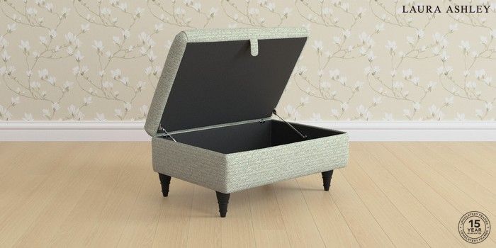 7.3.1 Buy Ambersham by Laura Ashley Storage Footstool Borwick Newport Blue Low Turned - Black from the Seasons online shop Click here to use our website with more accessibility support, for example screen readers