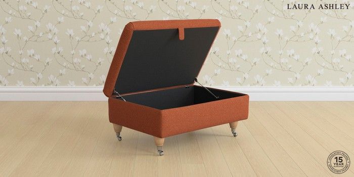 7.3.1 Buy Ambersham by Laura Ashley Storage Footstool Harley Terracotta Orange Low Chrome Castor - Light Oak from the Seasons online shop Click here to use our website with more accessibility support, for example screen readers
