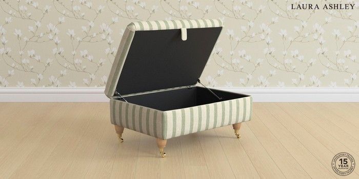 7.3.1 Buy Ambersham by Laura Ashley Storage Footstool Kinsham Stripe Hedgerow Green Low Brass Castor - Light Oak from the Seasons online shop Click here to use our website with more accessibility support, for example screen readers