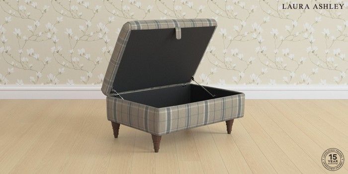 7.3.1 Buy Ambersham by Laura Ashley Storage Footstool Longstowe Check French Grey Low Turned - Chestnut from the Seasons online shop Click here to use our website with more accessibility support, for example screen readers