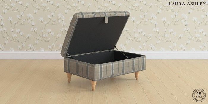 7.3.1 Buy Ambersham by Laura Ashley Storage Footstool Longstowe Check French Grey Low Turned - Light Oak from the Seasons online shop Click here to use our website with more accessibility support, for example screen readers
