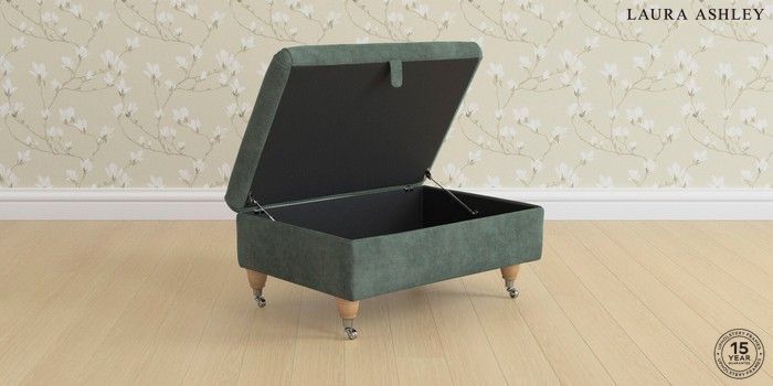 7.3.1 Buy Ambersham by Laura Ashley Storage Footstool Nantmor Fern Green Low Chrome Castor - Light Oak from the Seasons online shop Click here to use our website with more accessibility support, for example screen readers
