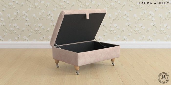 7.3.1 Buy Ambersham by Laura Ashley Storage Footstool Orla Chalk Pink Low Chrome Castor - Light Oak from the Seasons online shop Click here to use our website with more accessibility support, for example screen readers