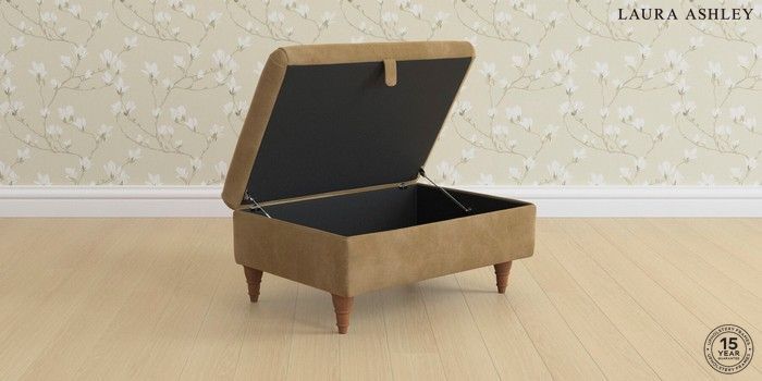 7.3.1 Buy Ambersham by Laura Ashley Storage Footstool Orla Gold Natural Low Turned - Teak from the Seasons online shop Click here to use our website with more accessibility support, for example screen readers