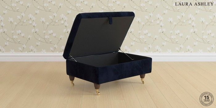 7.3.1 Buy Ambersham by Laura Ashley Storage Footstool Orla Midnight Navy Low Brass Castor - Chestnut from the Seasons online shop Click here to use our website with more accessibility support, for example screen readers