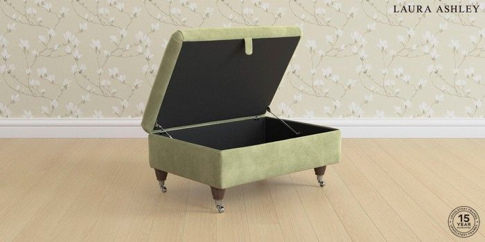 7.3.1 Buy Ambersham by Laura Ashley Storage Footstool Orla Pale Hedgerow Green Low Chrome Castor - Chestnut from the Seasons online shop Click here to use our website with more accessibility support, for example screen readers