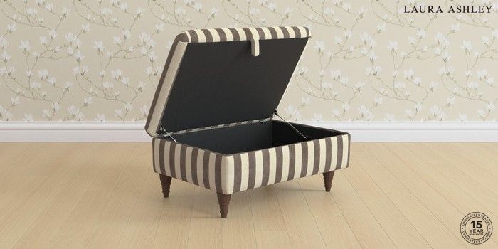 7.3.1 Buy Ambersham by Laura Ashley Storage Footstool Orla Stripe Dark Truffle Natural Low Turned - Chestnut from the Seasons online shop Click here to use our website with more accessibility support, for example screen readers
