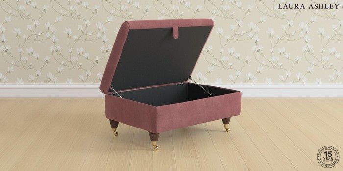 7.3.1 Buy Ambersham by Laura Ashley Storage Footstool Peyton Plum Purple Low Brass Castor - Chestnut from the Seasons online shop Click here to use our website with more accessibility support, for example screen readers