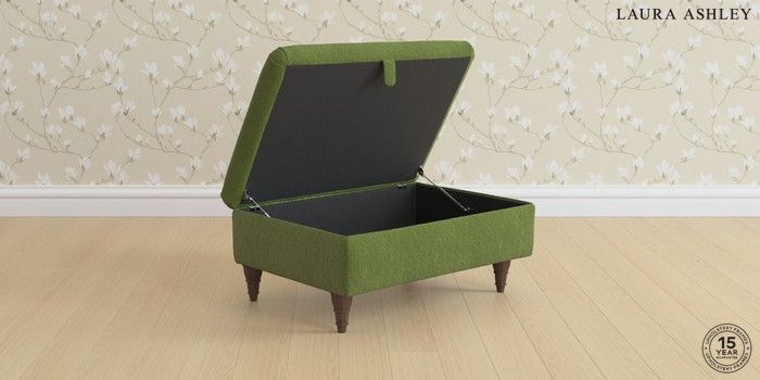 7.3.1 Buy Ambersham by Laura Ashley Storage Footstool Tichwell Olive Green Low Turned - Chestnut from the Seasons online shop Click here to use our website with more accessibility support, for example screen readers