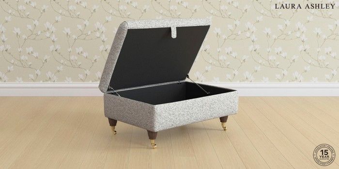 7.3.1 Buy Ambersham by Laura Ashley Storage Footstool Tichwell Steel Grey Low Brass Castor - Chestnut from the Seasons online shop Click here to use our website with more accessibility support, for example screen readers