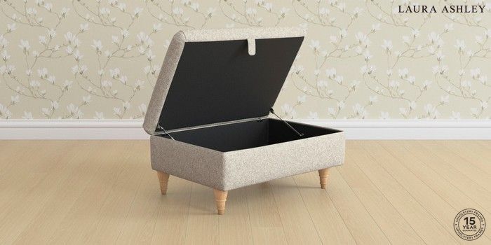7.3.1 Buy Ambersham by Laura Ashley Storage Footstool Tichwell Stone Natural Low Turned - Light Oak from the Seasons online shop Click here to use our website with more accessibility support, for example screen readers