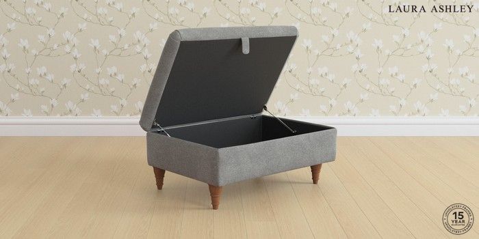 7.3.1 Buy Ambersham by Laura Ashley Storage Footstool Wooton Dark Steel Grey Low Turned - Teak from the Seasons online shop Click here to use our website with more accessibility support, for example screen readers