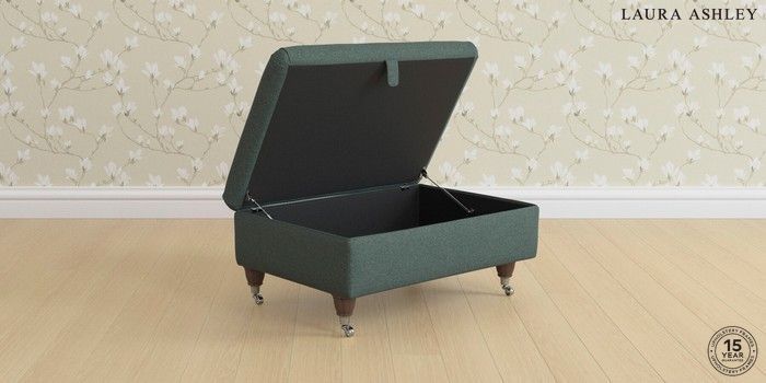 7.3.1 Buy Ambersham by Laura Ashley Storage Footstool Wooton Forest Green Low Chrome Castor - Chestnut from the Seasons online shop Click here to use our website with more accessibility support, for example screen readers