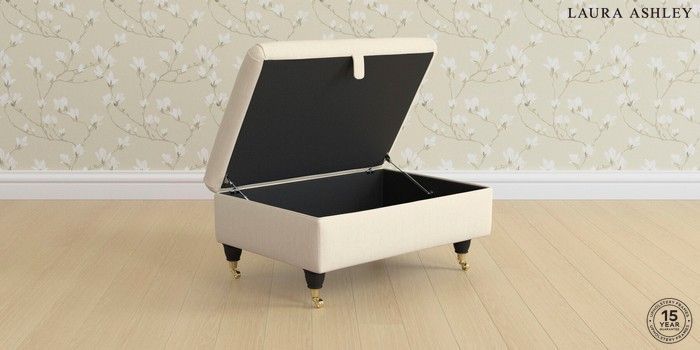 7.3.1 Buy Ambersham by Laura Ashley Storage Footstool Wooton Natural Low Brass Castor - Black from the Seasons online shop Click here to use our website with more accessibility support, for example screen readers