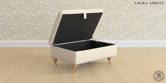 7.3.1 Buy Ambersham by Laura Ashley Storage Footstool Wooton Natural Low Brass Castor - Light Oak from the Seasons online shop Click here to use our website with more accessibility support, for example screen readers
