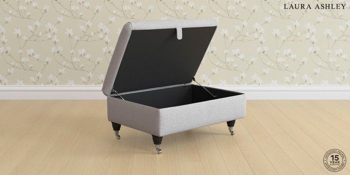 7.3.1 Buy Ambersham by Laura Ashley Storage Footstool Wooton Pale Steel Grey Low Chrome Castor - Black from the Seasons online shop Click here to use our website with more accessibility support, for example screen readers