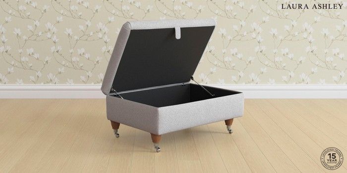 7.3.1 Buy Ambersham by Laura Ashley Storage Footstool Wooton Pale Steel Grey Low Chrome Castor - Teak from the Seasons online shop Click here to use our website with more accessibility support, for example screen readers