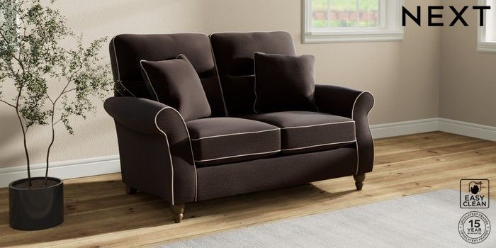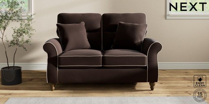 7.3.1 Buy Ashford Highback 2 Seater Small Sofa Fine Chenille with Contrast Chocolate Brown and Oyster Low Turned - Mid from the Seasons online shop Click here to use our website with more accessibility support, for example screen readers