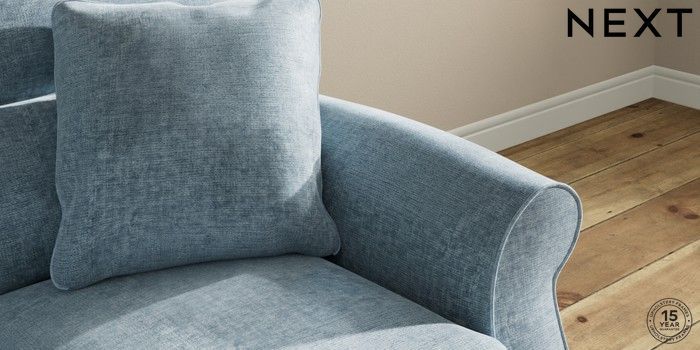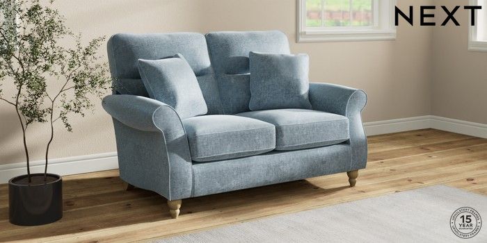 7.2.10 Buy Ashford Highback 2 Seater Small Sofa Plush Chenille Light Blue Low Turned - Light from the Seasons online shop Click here to use our website with more accessibility support, for example screen readers