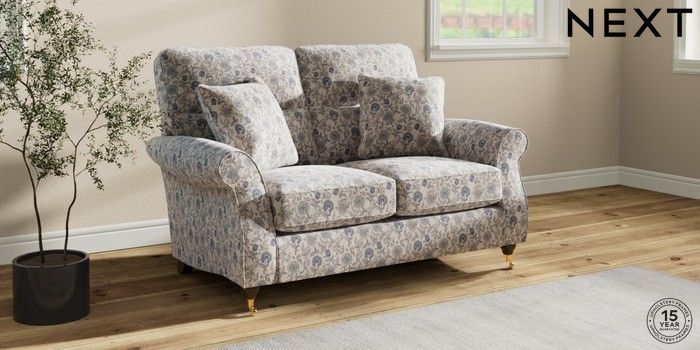 7.3.1 Buy Ashford Highback 2 Seater Small Sofa Relaxed Linen Look Print Woodblock Floral Blue Castor - Mid from the Seasons online shop Click here to use our website with more accessibility support, for example screen readers