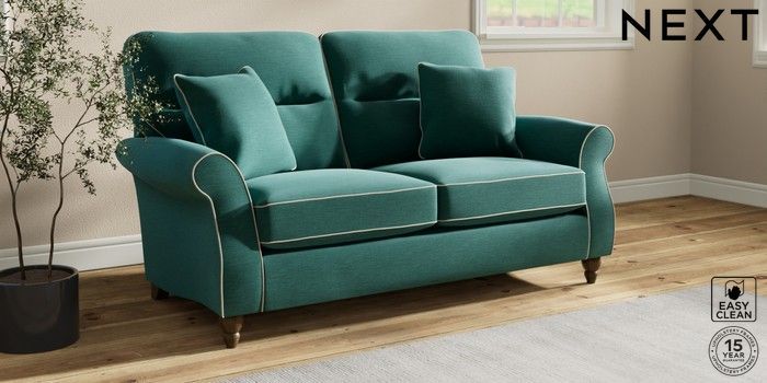 7.3.1 Buy Ashford Highback 2 Seater Sofa Fine Chenille with Contrast Dark Juniper Green and Oyster Low Turned - Mid from the Seasons online shop Click here to use our website with more accessibility support, for example screen readers