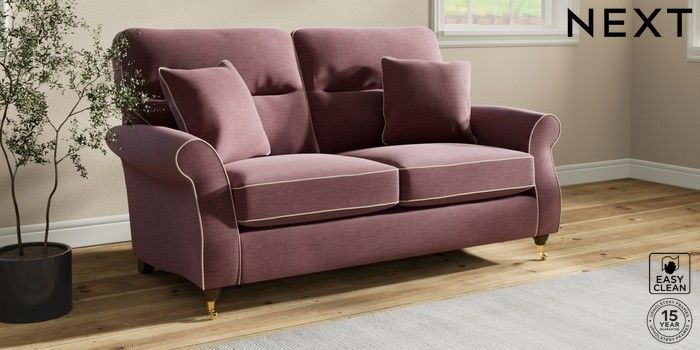 7.3.1 Buy Ashford Highback 2 Seater Sofa Fine Chenille with Contrast Mid Mulberry Purple and Oyster Castor - Mid from the Seasons online shop Click here to use our website with more accessibility support, for example screen readers