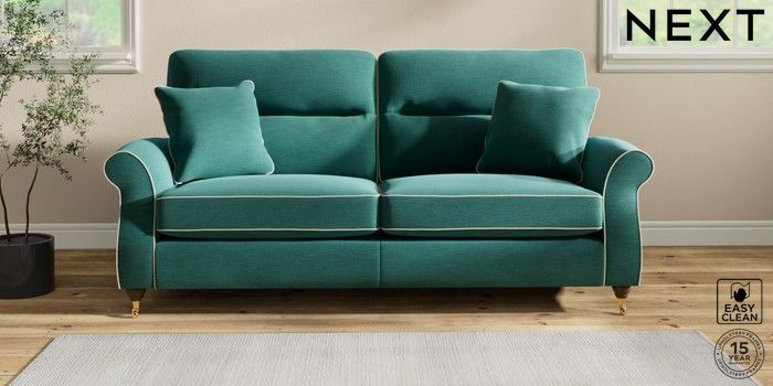 7.3.1 Buy Ashford Highback 3 Seater Sofa Fine Chenille with Contrast Dark Juniper Green and Oyster Castor - Mid from the Seasons online shop Click here to use our website with more accessibility support, for example screen readers