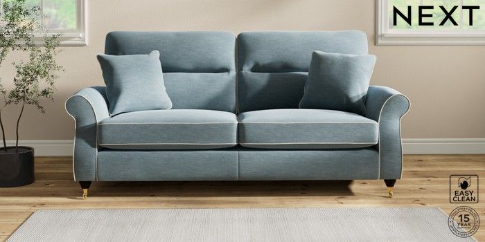 7.3.1 Buy Ashford Highback 3 Seater Sofa Fine Chenille with Contrast Mid Blue and Oyster Castor - Dark from the Seasons online shop Click here to use our website with more accessibility support, for example screen readers