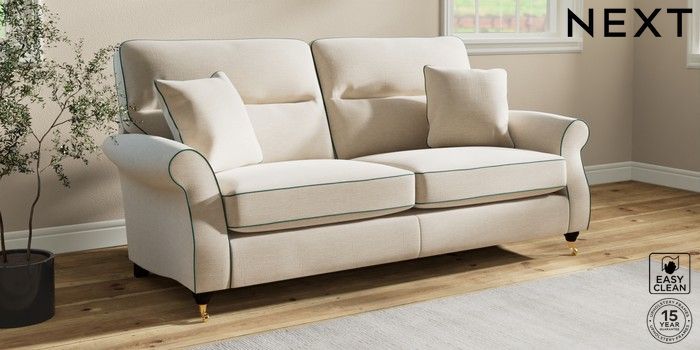 Sink into the Ashford high-back sofa, where country style meets ultimate comfort. Its generous size and elegant scroll arms give it a classic look. You'll love the extra back support from its higher design. The seats are designed for firm support and long-lasting comfort, with a special firmer high-density foam core sandwiched between soft foam toppers to give ultimate support, durability and recovery whilst offering a more tailored look that bounces back into shape – no need for constant plumping! These seat cushions are low maintainence and will return to their shape when they are not in use. We've added scatter cushions filled with a luxurious fibre mix for added comfort. Seat cushions are reversible.