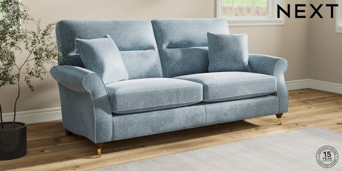 7.2.10 Buy Ashford Highback 3 Seater Sofa Plush Chenille Light Blue Castor - Mid from the Seasons online shop Click here to use our website with more accessibility support, for example screen readers